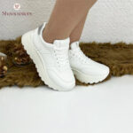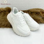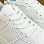 Optez pour un style épuré et intemporel avec ces baskets blanches minimalistes. Confectionnées en cuir synthétique de haute qualité, elles offrent un confort exceptionnel grâce à leur semelle épaisse en caoutchouc. La finition entièrement blanche avec un léger détail argenté à l’arrière apporte une touche moderne et élégante. Parfaites pour une tenue casual chic ou sportive