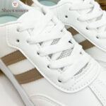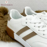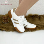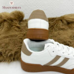 Ajoutez une touche rétro à votre look avec ces sneakers blanches et beiges au design inspiré des classiques du sport. Les deux bandes latérales beige et la semelle en gomme marron créent un contraste élégant et tendance. Confortables et légères, elles sont parfaites pour une tenue décontractée ou sportive.