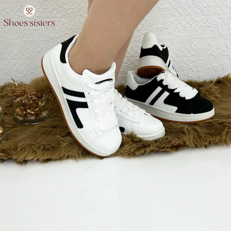Craquez pour le style épuré et sophistiqué de ces sneakers blanches à plateforme. Confectionnées en cuir synthétique texturé de haute qualité, elles sont agrémentées de détails raffinés tels que des œillets métalliques argentés et des embouts de lacets ornés de strass pour une touche de glamour subtile.
