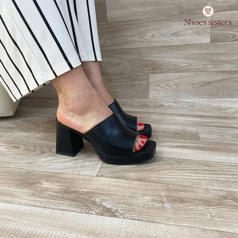 Ces sabots à boucles noires offrent un équilibre parfait entre confort et allure. Idéales pour l’été, elles subliment vos tenues avec une touche de caractère.