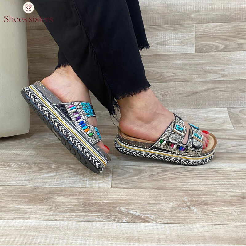 Les sabots femme bohème signés Shoes Sisters sont un véritable coup de cœur pour celles qui cherchent à allier style, confort et originalité. Avec leur semelle plateforme tressée, leurs brides ornées de perles colorées cousues à la main, et leurs boucles dorées ajustables, ces sabots incarnent l’esprit bohème chic par excellence.